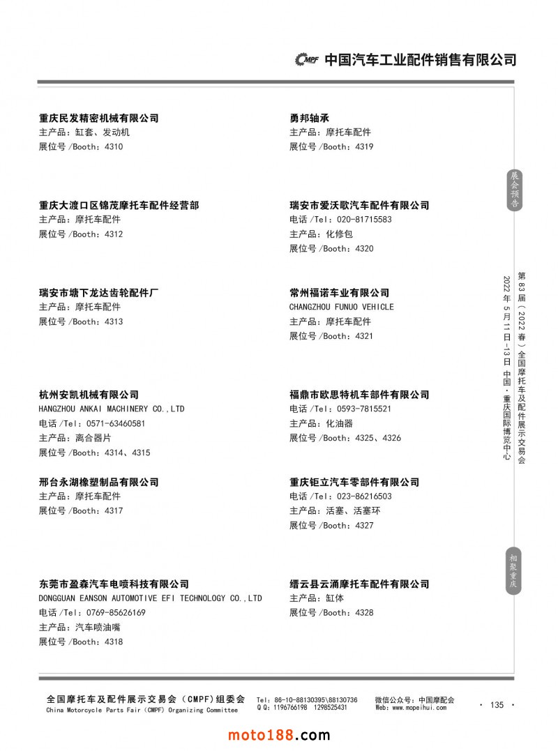 內(nèi)135 第82屆(2021秋)全國(guó)摩托車及配件展示交易會(huì)-廣州站參展企業(yè)信息