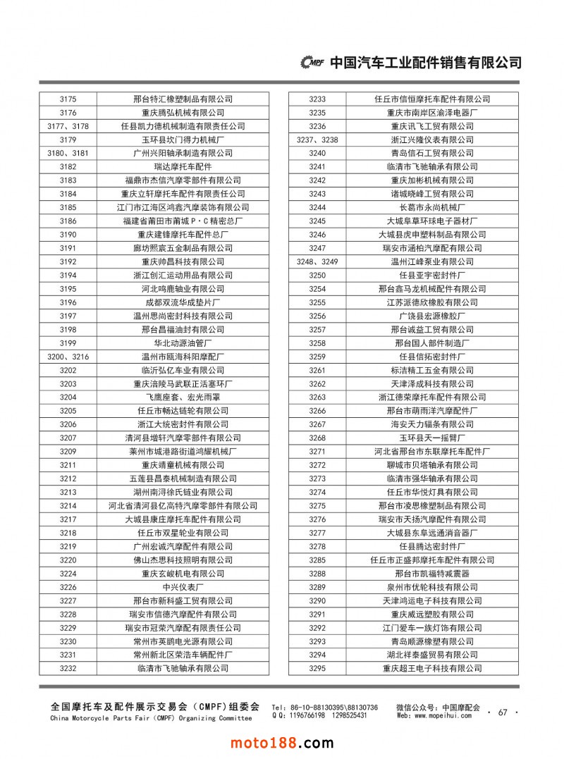 內(nèi)67 第82屆(2021秋)全國(guó)摩托車及配件展示交易會(huì)-廣州站參展單位名錄