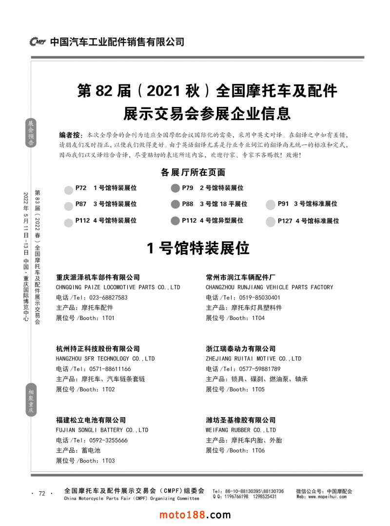 內(nèi)72 第82屆(2021秋)全國摩托車及配件展示交易會-廣州站參展企業(yè)信息