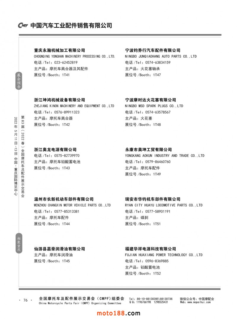 內(nèi)76 第82屆(2021秋)全國摩托車及配件展示交易會-廣州站參展企業(yè)信息