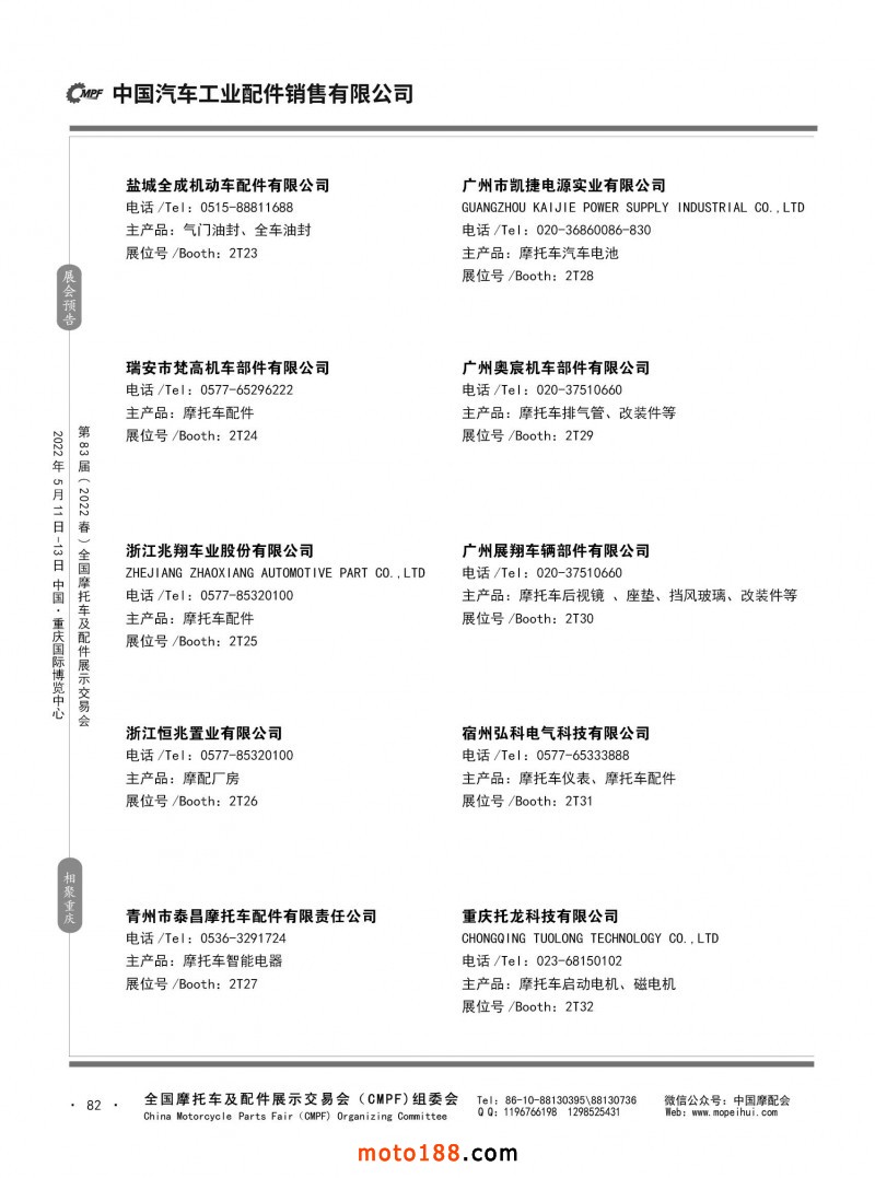 內(nèi)82 第82屆(2021秋)全國(guó)摩托車(chē)及配件展示交易會(huì)-廣州站參展企業(yè)信息