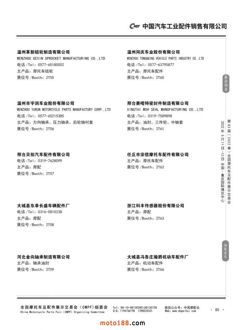內(nèi)85 第82屆(2021秋)全國摩托車及配件展示交易會-廣州站參展企業(yè)信息