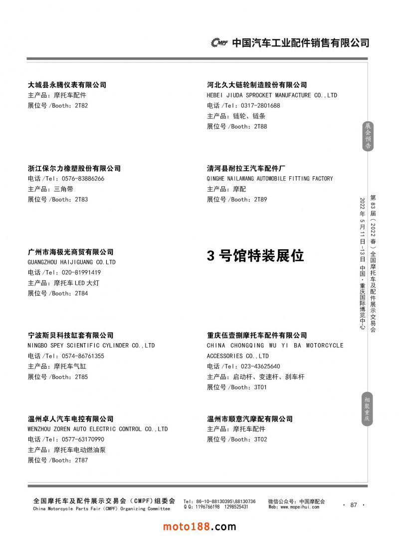 內(nèi)87 第82屆(2021秋)全國摩托車及配件展示交易會-廣州站參展企業(yè)信息