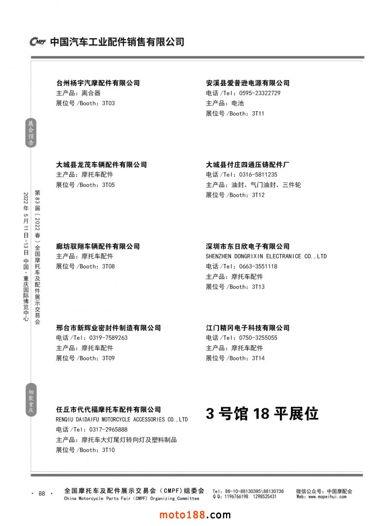 內88 第82屆(2021秋)全國摩托車及配件展示交易會-廣州站參展企業(yè)信息