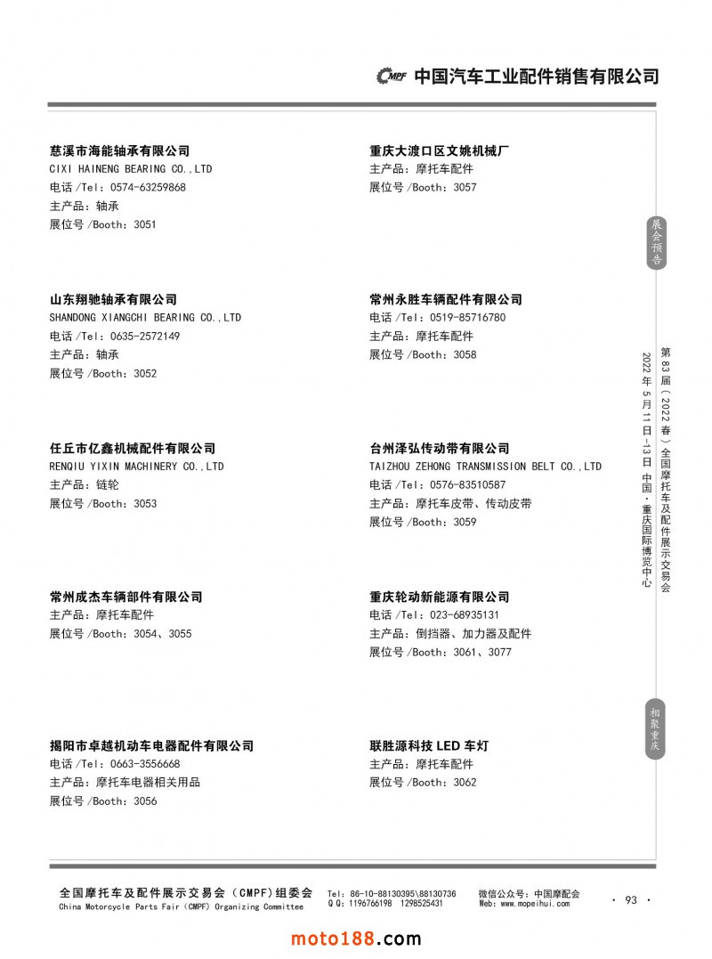 內(nèi)93 第82屆(2021秋)全國摩托車及配件展示交易會-廣州站參展企業(yè)信息