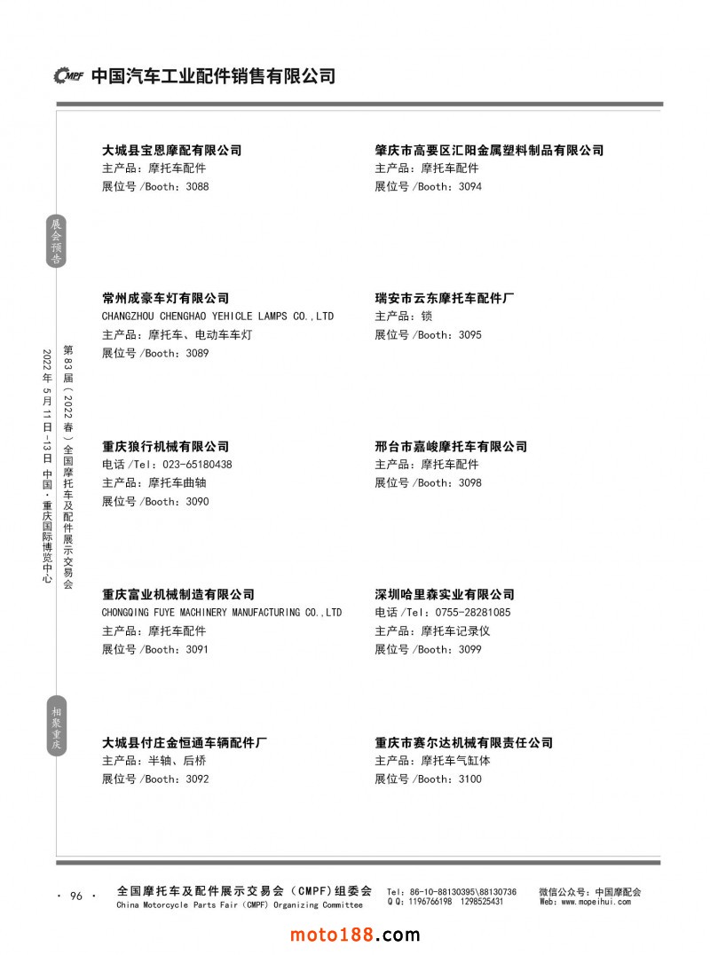 內96 第82屆(2021秋)全國摩托車及配件展示交易會-廣州站參展企業(yè)信息