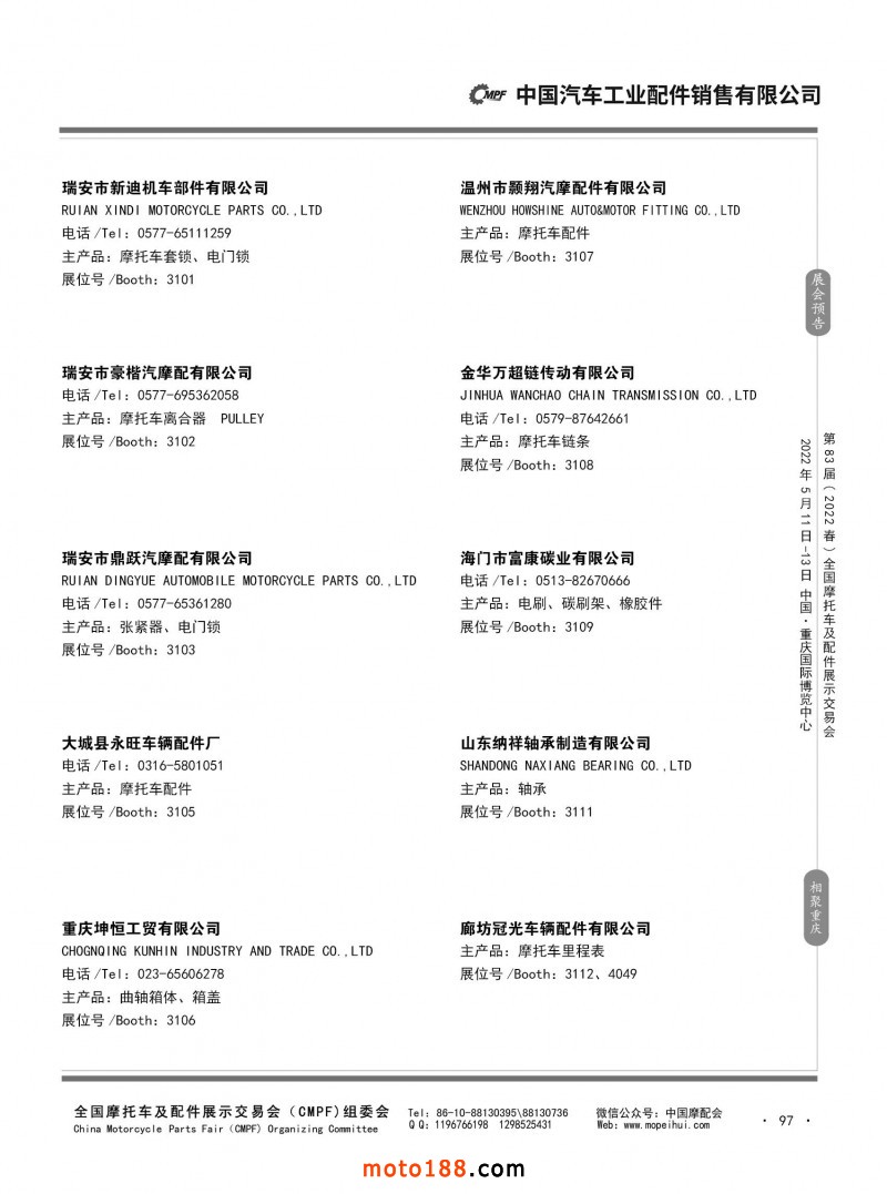 內(nèi)97 第82屆(2021秋)全國摩托車及配件展示交易會-廣州站參展企業(yè)信息
