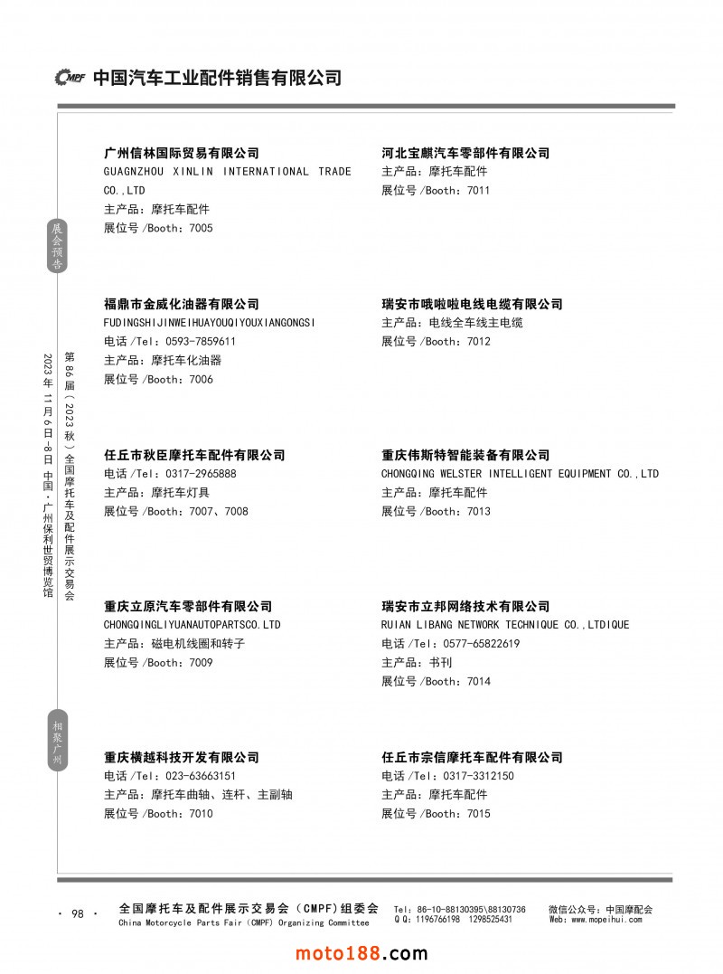 內80-176 第85屆(2023春)全國摩托車及配件展示交易會-重慶站參展企業(yè)信息
