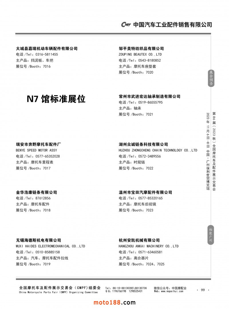 內(nèi)80-176 第85屆(2023春)全國摩托車及配件展示交易會-重慶站參展企業(yè)信息