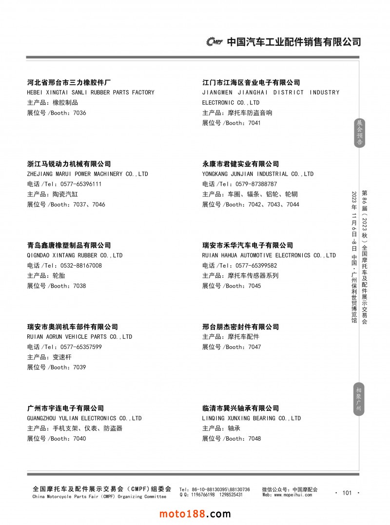 內(nèi)80-176 第85屆(2023春)全國(guó)摩托車及配件展示交易會(huì)-重慶站參展企業(yè)信息