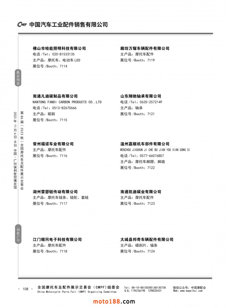 內80-176 第85屆(2023春)全國摩托車及配件展示交易會-重慶站參展企業(yè)信息