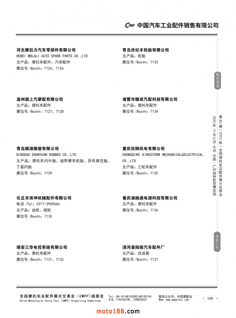 內(nèi)80-176 第85屆(2023春)全國摩托車及配件展示交易會-重慶站參展企業(yè)信息