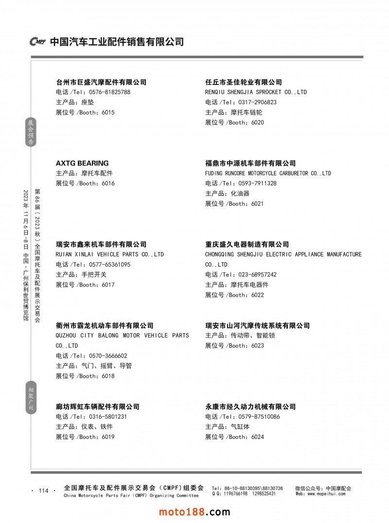 內(nèi)80-176 第85屆(2023春)全國摩托車及配件展示交易會-重慶站參展企業(yè)信息