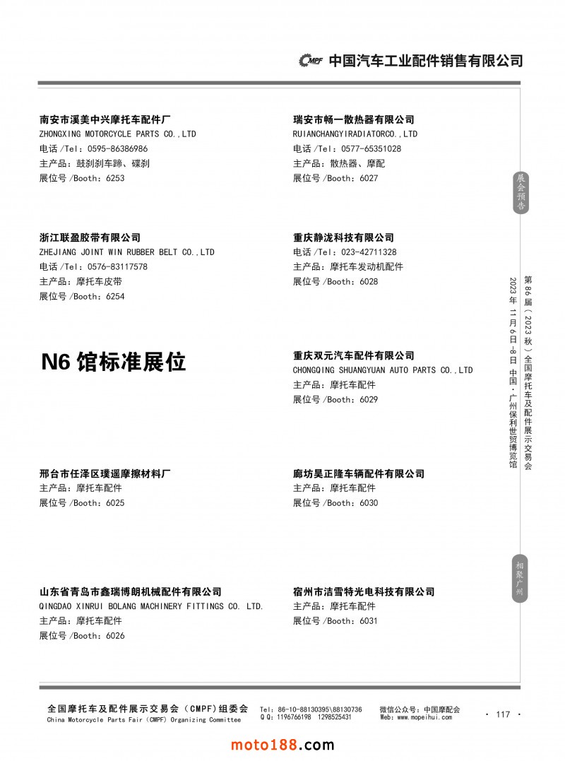 內(nèi)80-176 第85屆(2023春)全國摩托車及配件展示交易會-重慶站參展企業(yè)信息