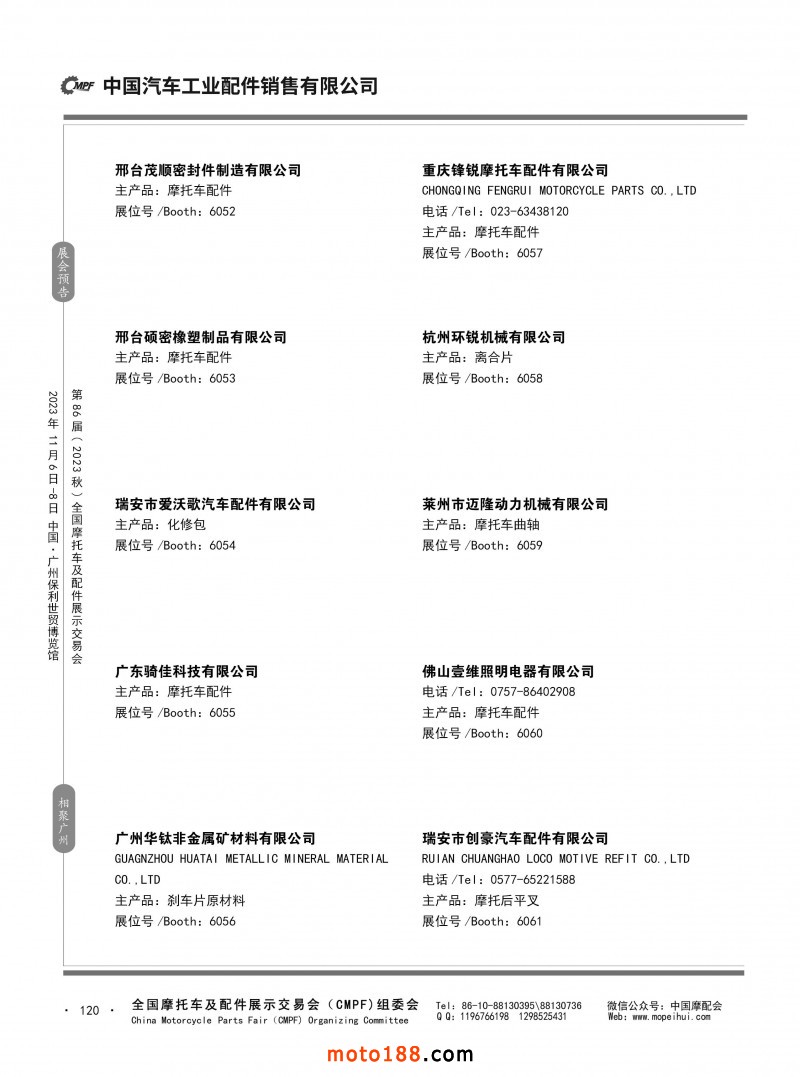 內(nèi)80-176 第85屆(2023春)全國摩托車及配件展示交易會-重慶站參展企業(yè)信息