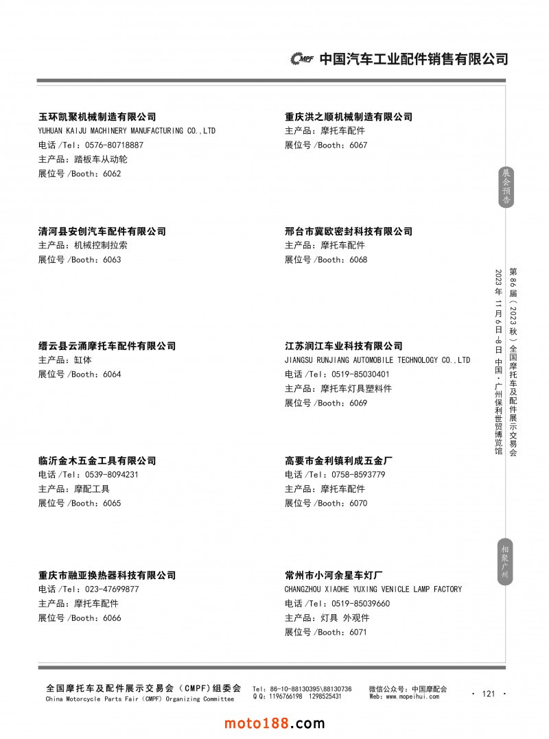 內(nèi)80-176 第85屆(2023春)全國摩托車及配件展示交易會-重慶站參展企業(yè)信息