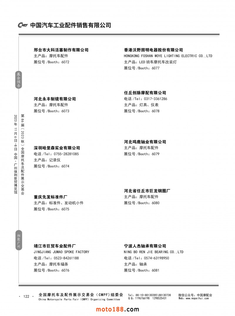內(nèi)80-176 第85屆(2023春)全國摩托車及配件展示交易會-重慶站參展企業(yè)信息