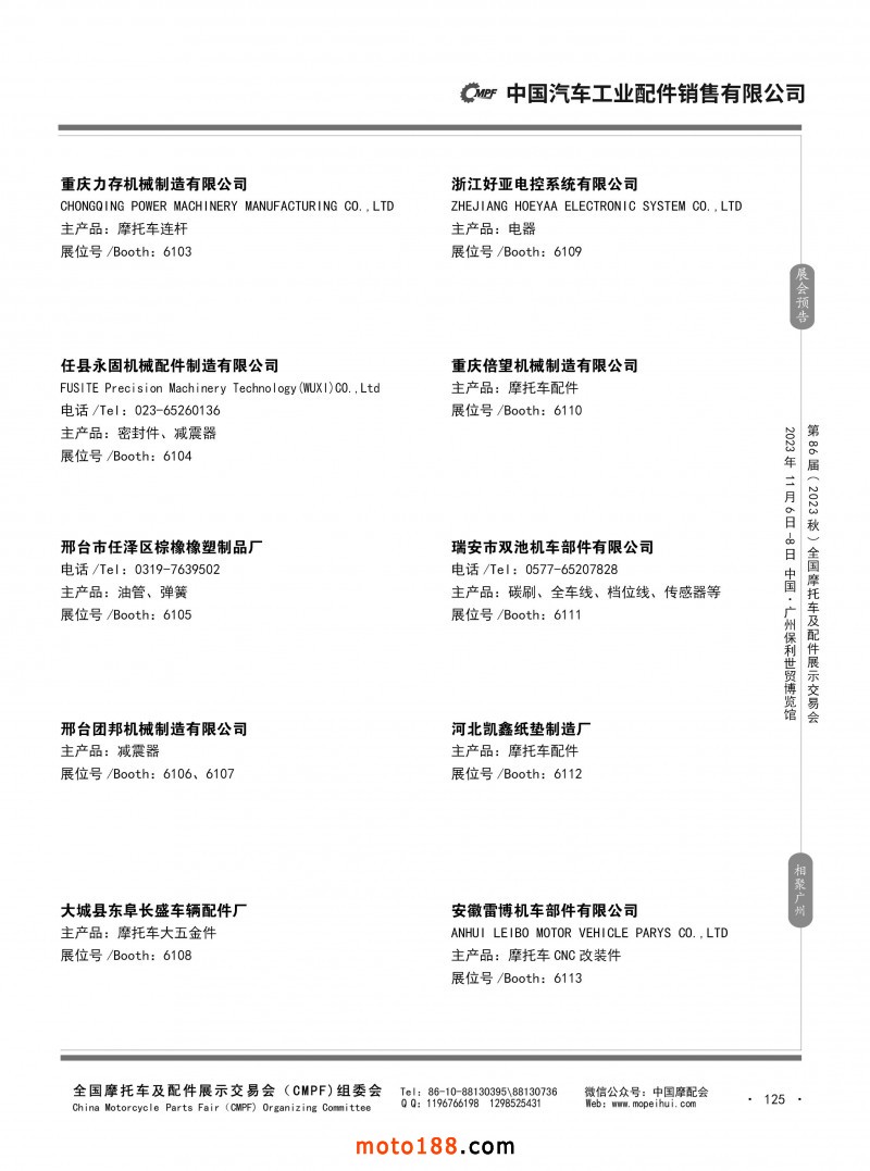 內(nèi)80-176 第85屆(2023春)全國摩托車及配件展示交易會-重慶站參展企業(yè)信息
