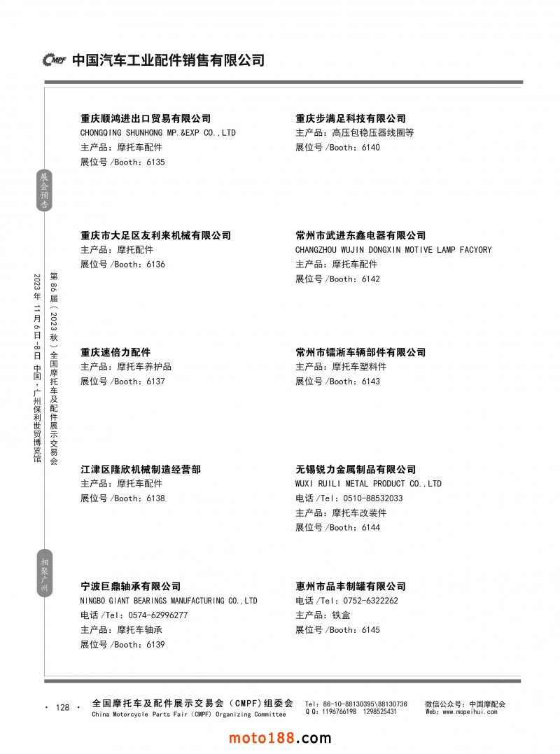內(nèi)80-176 第85屆(2023春)全國摩托車及配件展示交易會-重慶站參展企業(yè)信息