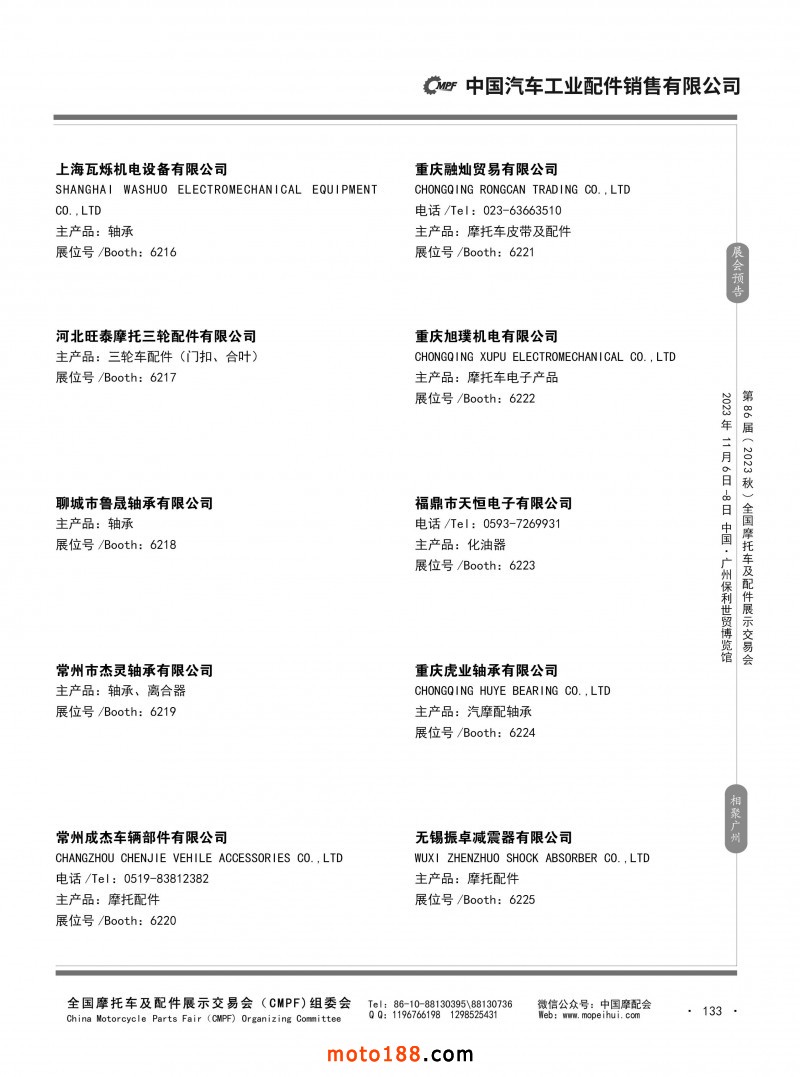 內(nèi)80-176 第85屆(2023春)全國(guó)摩托車及配件展示交易會(huì)-重慶站參展企業(yè)信息