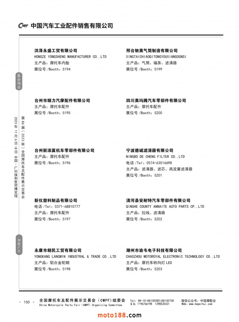 內(nèi)80-176 第85屆(2023春)全國(guó)摩托車(chē)及配件展示交易會(huì)-重慶站參展企業(yè)信息
