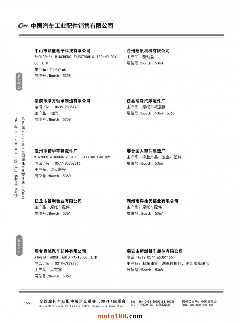 內(nèi)80-176 第85屆(2023春)全國摩托車及配件展示交易會(huì)-重慶站參展企業(yè)信息