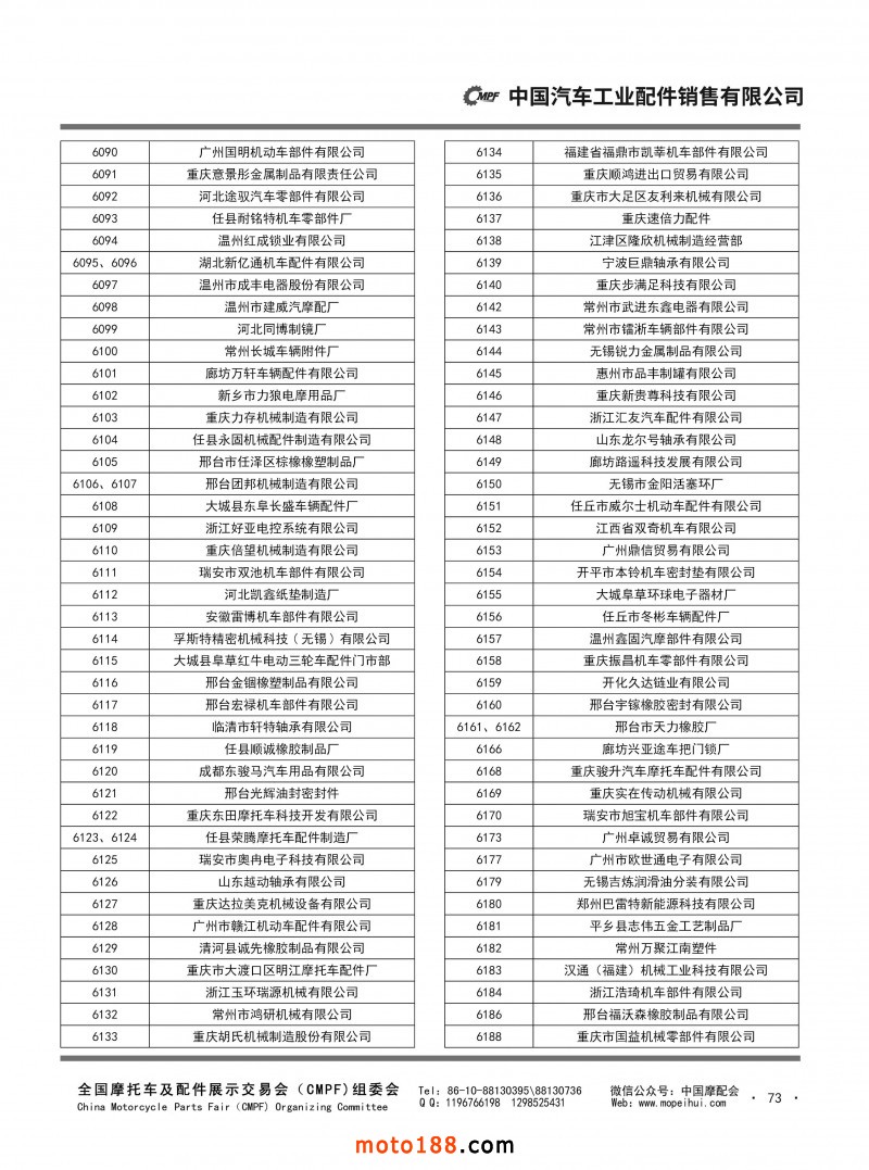 內(nèi)67-79 第85屆(2023春)全國(guó)摩托車及配件展示交易會(huì)-重慶站參展單位名錄