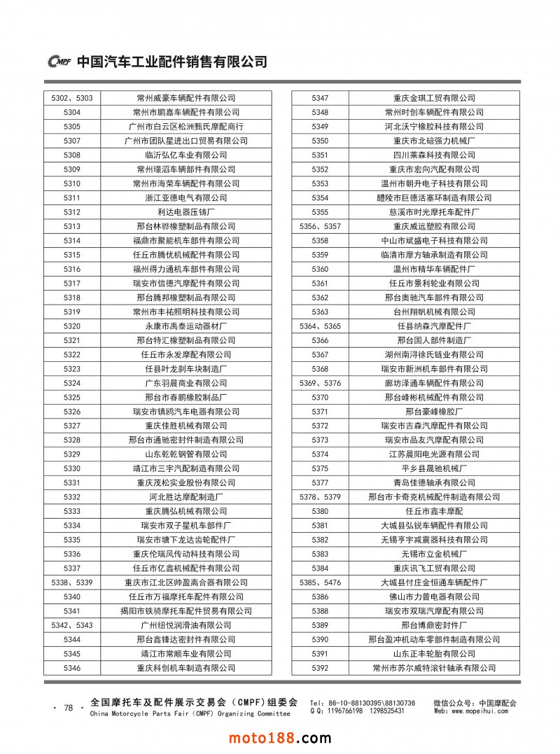 內(nèi)67-79 第85屆(2023春)全國摩托車及配件展示交易會-重慶站參展單位名錄