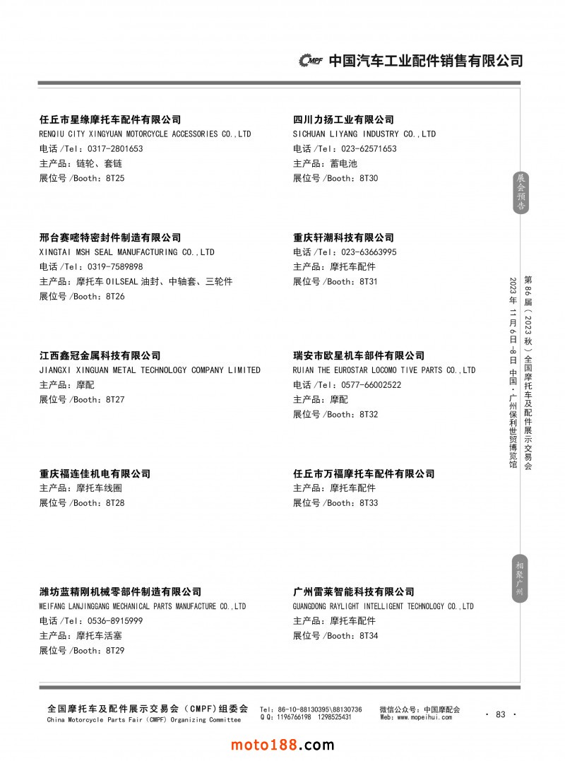 內(nèi)80-176 第85屆(2023春)全國摩托車及配件展示交易會-重慶站參展企業(yè)信息