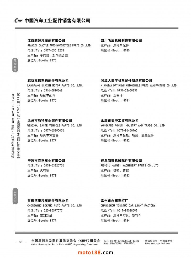 內(nèi)80-176 第85屆(2023春)全國摩托車及配件展示交易會-重慶站參展企業(yè)信息