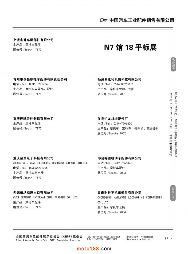 內(nèi)80-176 第85屆(2023春)全國(guó)摩托車及配件展示交易會(huì)-重慶站參展企業(yè)信息