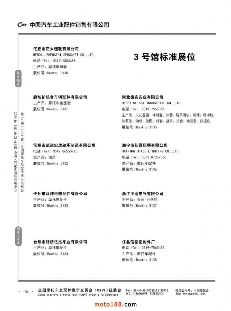 第86屆(2023秋)全國摩托車及配件展示交易會(huì)-廣州站參展企業(yè)信息