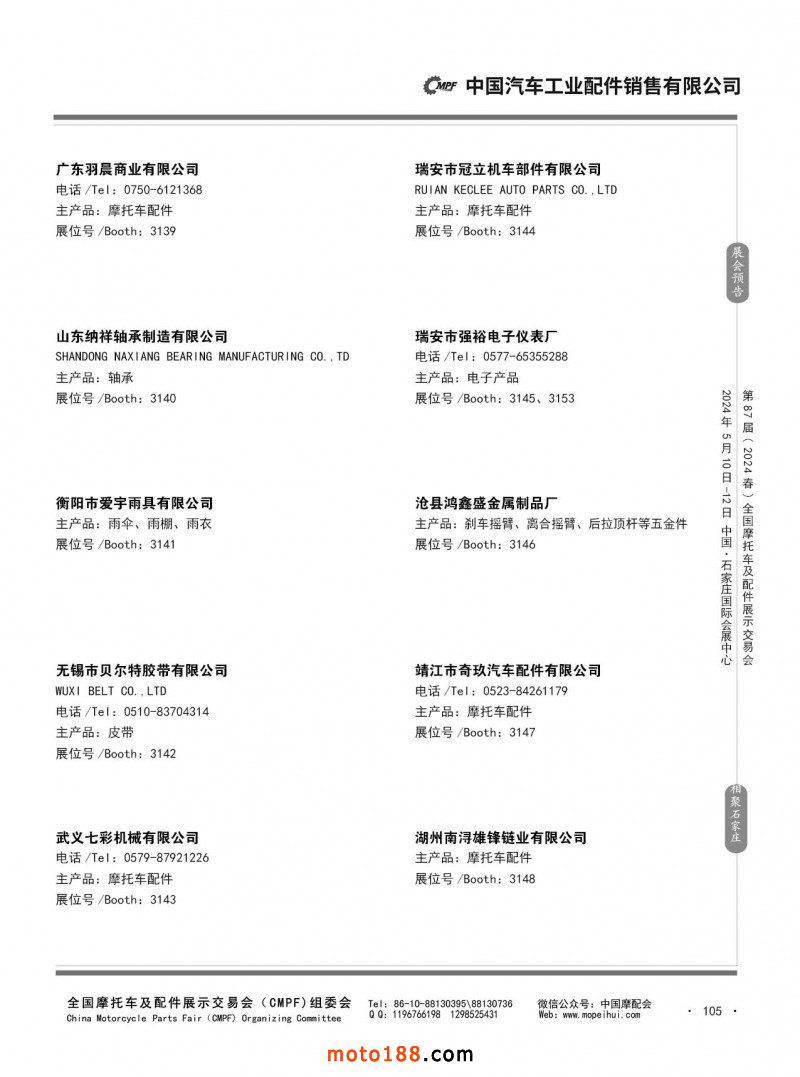 第86屆(2023秋)全國(guó)摩托車及配件展示交易會(huì)-廣州站參展企業(yè)信息