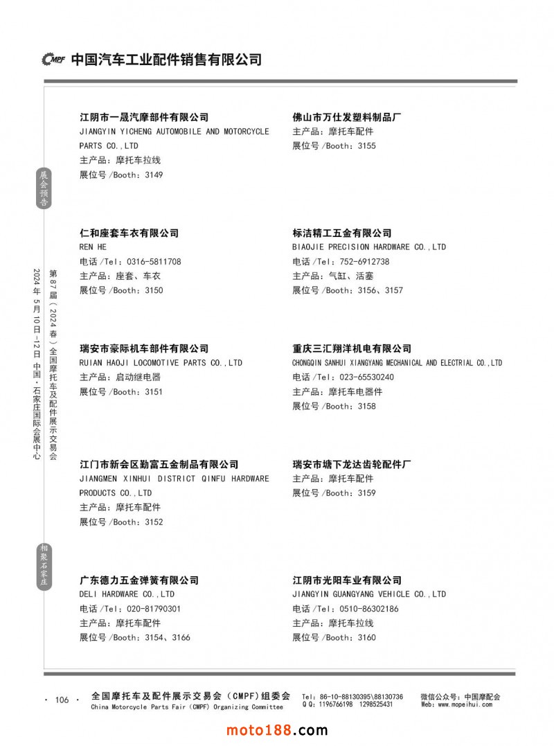 第86屆(2023秋)全國(guó)摩托車及配件展示交易會(huì)-廣州站參展企業(yè)信息
