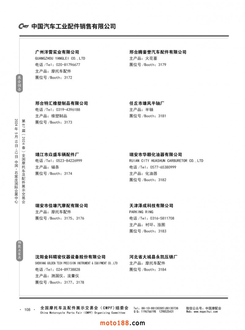 第86屆(2023秋)全國摩托車及配件展示交易會-廣州站參展企業(yè)信息