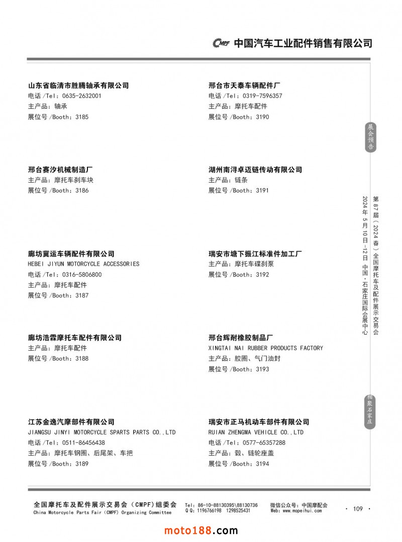 第86屆(2023秋)全國(guó)摩托車及配件展示交易會(huì)-廣州站參展企業(yè)信息