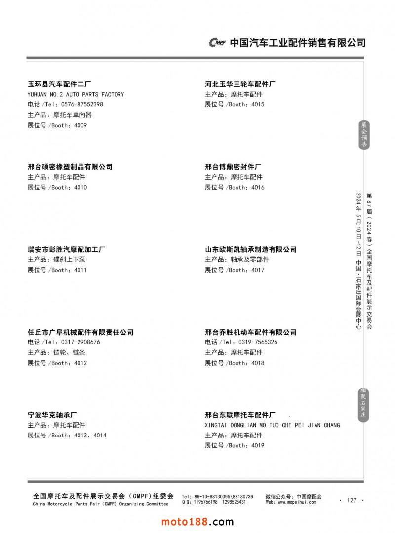 第86屆(2023秋)全國摩托車及配件展示交易會-廣州站參展企業(yè)信息