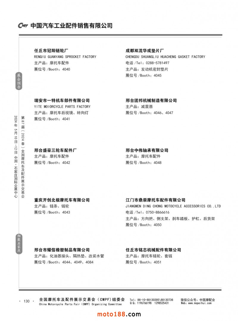 第86屆(2023秋)全國摩托車及配件展示交易會(huì)-廣州站參展企業(yè)信息
