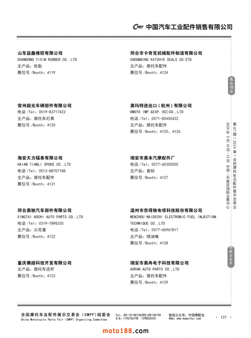 第86屆(2023秋)全國摩托車及配件展示交易會-廣州站參展企業(yè)信息