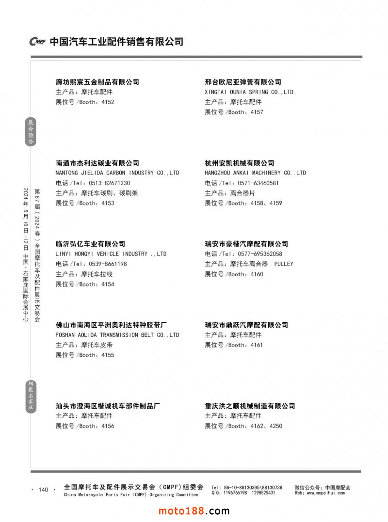 第86屆(2023秋)全國(guó)摩托車及配件展示交易會(huì)-廣州站參展企業(yè)信息