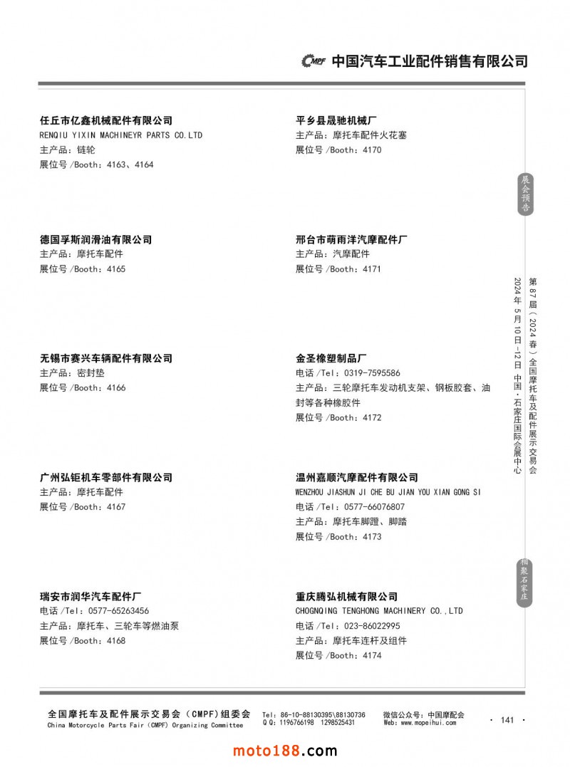 第86屆(2023秋)全國摩托車及配件展示交易會-廣州站參展企業(yè)信息