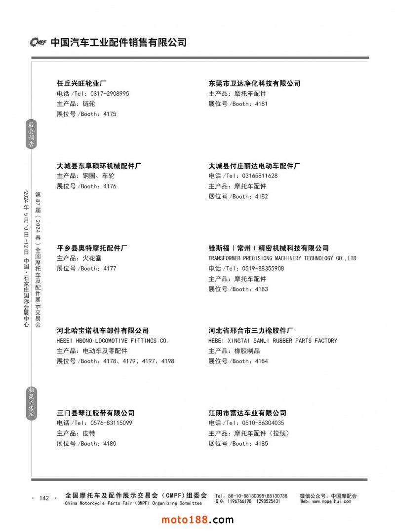 第86屆(2023秋)全國摩托車及配件展示交易會(huì)-廣州站參展企業(yè)信息