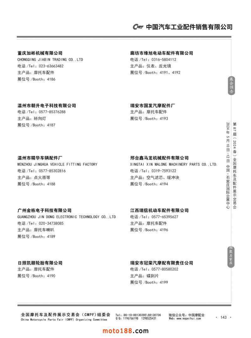 第86屆(2023秋)全國(guó)摩托車(chē)及配件展示交易會(huì)-廣州站參展企業(yè)信息