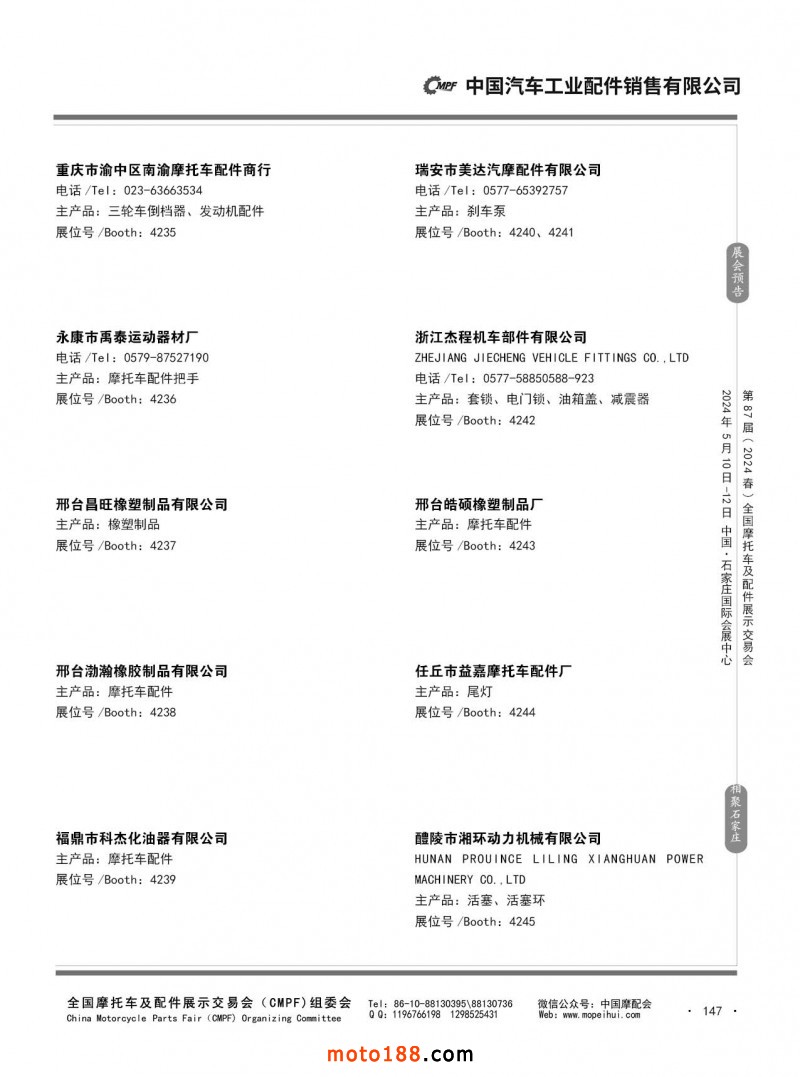 第86屆(2023秋)全國摩托車及配件展示交易會-廣州站參展企業(yè)信息