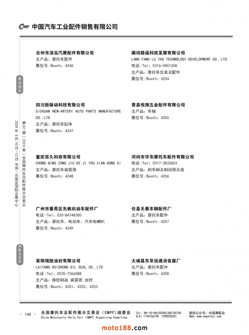 第86屆(2023秋)全國摩托車及配件展示交易會-廣州站參展企業(yè)信息