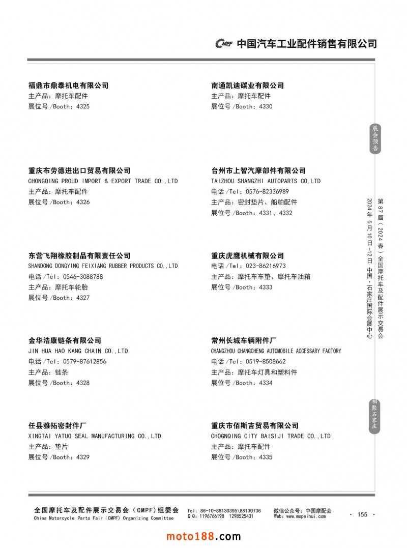 第86屆(2023秋)全國摩托車及配件展示交易會-廣州站參展企業(yè)信息