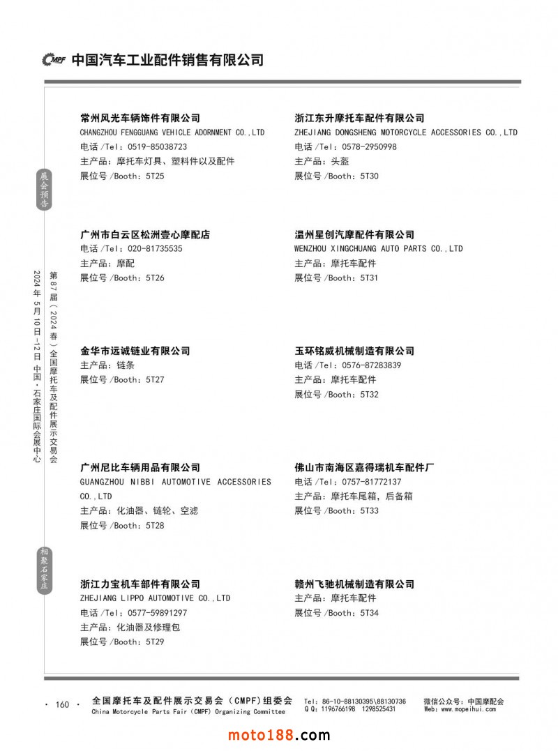 第86屆(2023秋)全國(guó)摩托車(chē)及配件展示交易會(huì)-廣州站參展企業(yè)信息