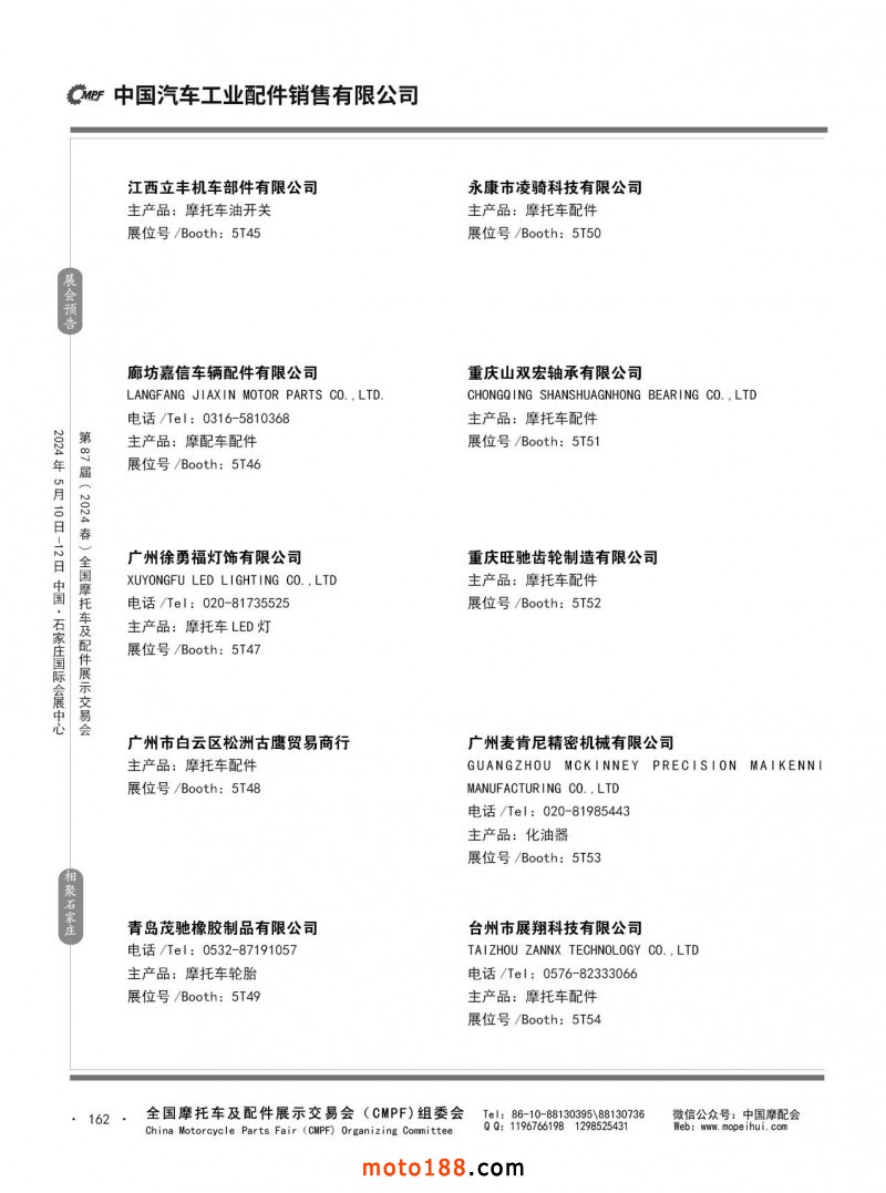 第86屆(2023秋)全國(guó)摩托車及配件展示交易會(huì)-廣州站參展企業(yè)信息