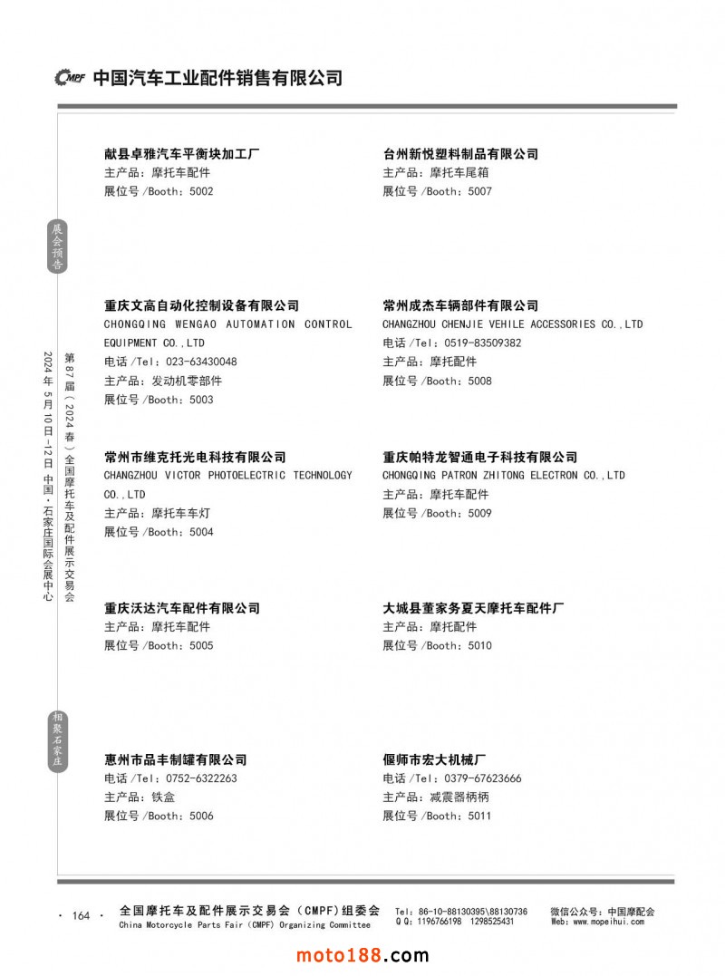 第86屆(2023秋)全國摩托車及配件展示交易會-廣州站參展企業(yè)信息