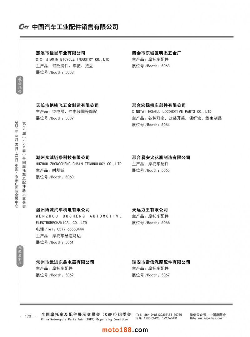 第86屆(2023秋)全國摩托車及配件展示交易會-廣州站參展企業(yè)信息